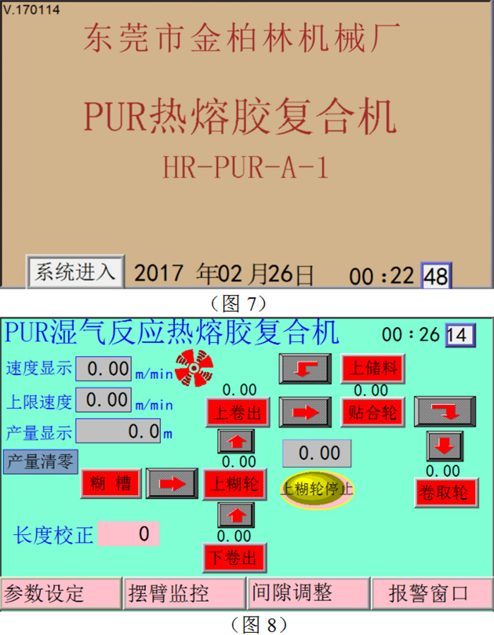 7)上糊輪:此選擇開關請在啟動后,加速前關閉,并與停止后,馬上打開!否則將出現(xiàn)下方卷的產(chǎn)品隨著上糊輪轉動而帶動!運行中請務必 不要打開此開關!