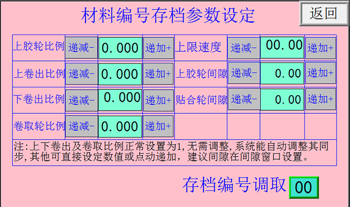 此界面設定各個馬達之間的速度比例和最高限速、間隙!并通過 來微調數(shù)據(jù)!